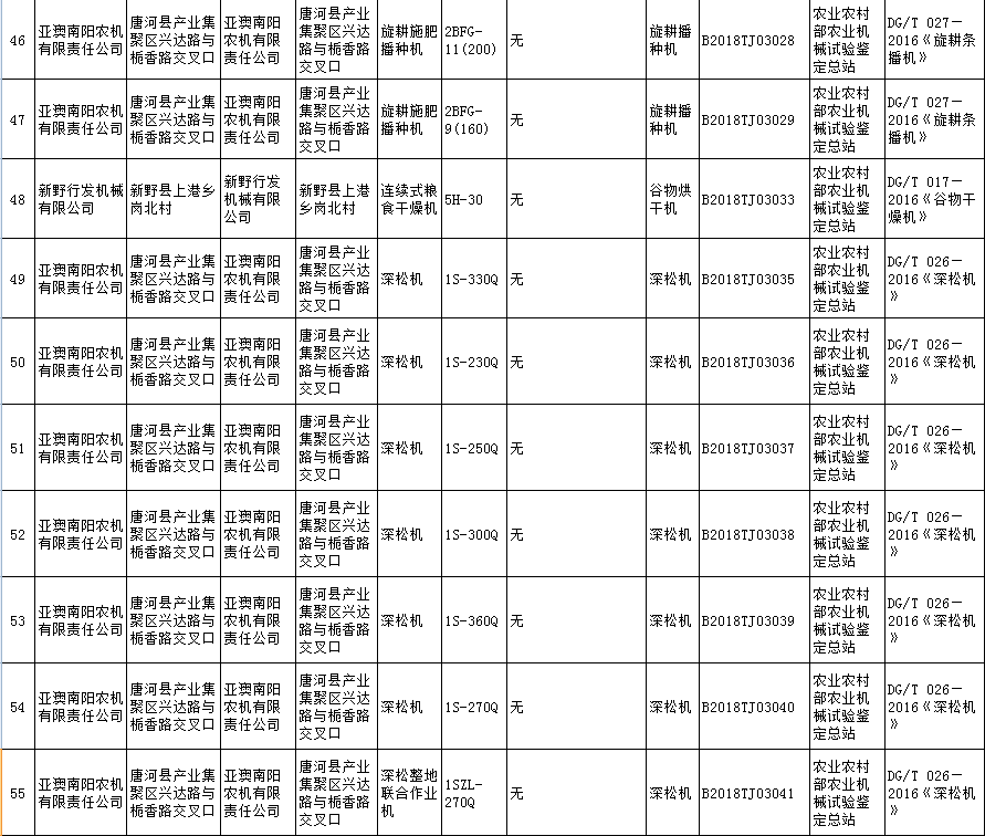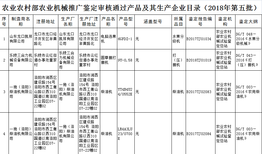 根據農業(yè)部農業(yè)機械試驗鑒定總站2018年第五批部級農機推廣鑒定結果的公示,9個型號的機型全部通過農機鑒定總站的批準。