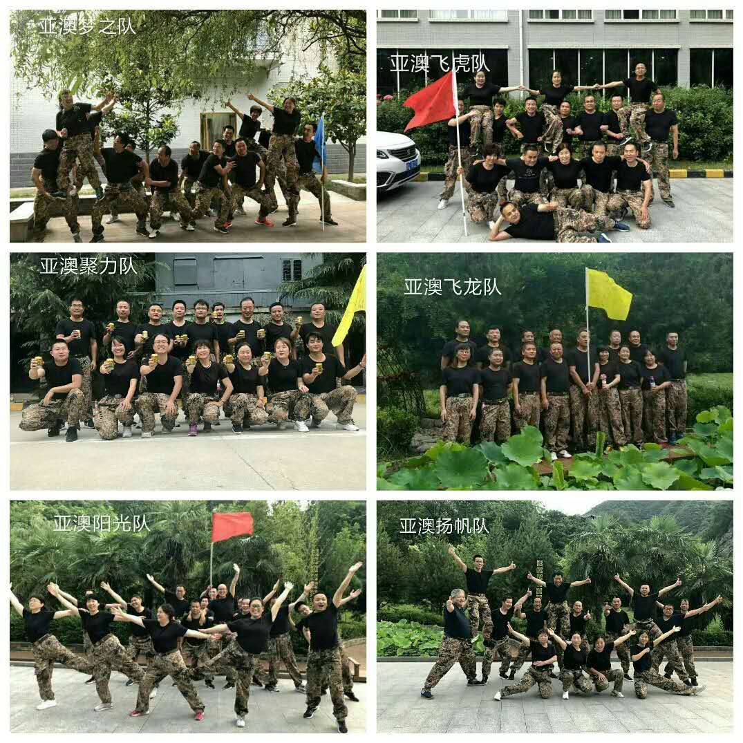 隨后,在經(jīng)過了熱身游戲后,拓展活動正式開始,所有參加人員分成了六個團(tuán)隊。大家集思廣益,完成了各自隊名、口號、隊徽、隊歌、隊形的構(gòu)思和設(shè)計,你一言我一語,集思廣益,認(rèn)真創(chuàng)建自己的團(tuán)隊文化?!皝啺膲糁牎薄ⅰ皝啺年柟怅牎?、“亞澳聚力隊”、“亞澳飛龍隊”、“亞澳揚帆隊”、“亞澳飛虎隊”在一片歡聲笑語中應(yīng)運而生,并逐一進(jìn)行了展示。