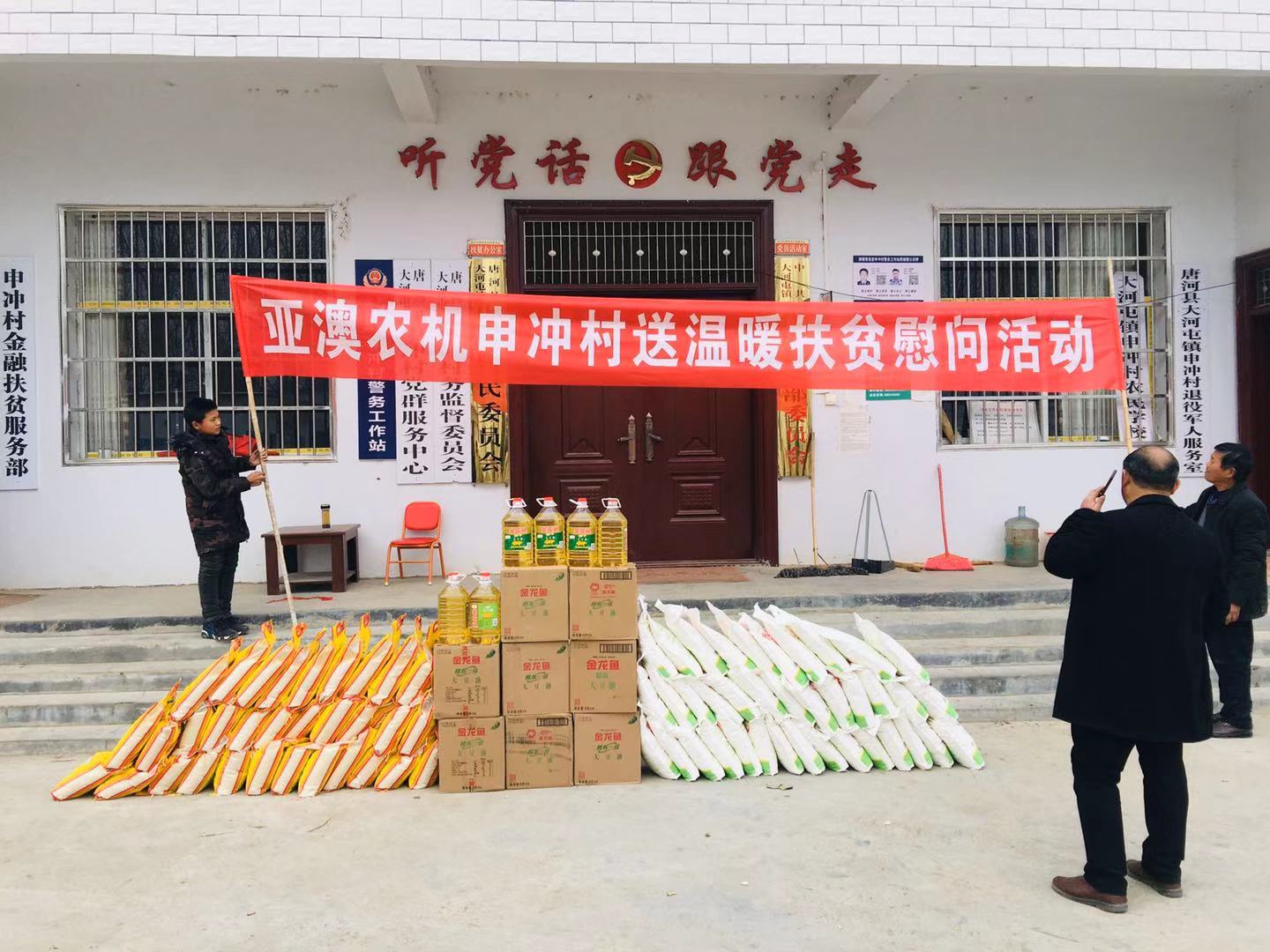 為積極貫徹落實唐河縣委縣政府”百企幫百村”的扶貧工作精神,履行企業(yè)社會責任,按照縣扶貧辦工作統(tǒng)一部署,亞澳農(nóng)機結合對口幫扶的申沖村實際情況,因地制宜,統(tǒng)籌規(guī)劃,務求實效,在2018-2019年開展了一系列的扶貧幫困工作。