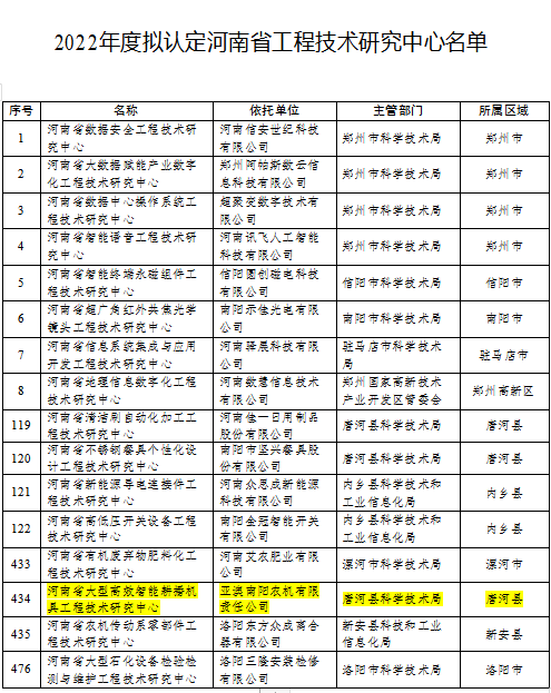 熱烈祝賀亞澳農(nóng)機(jī)被河南省科學(xué)技術(shù)廳認(rèn)定為 省級(jí)工程技術(shù)研究中心