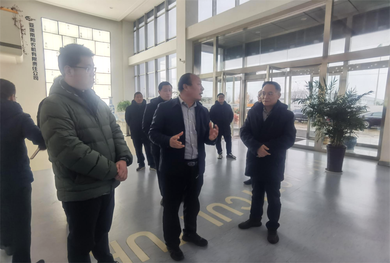 2023年12月15日,國務院國資委三農(nóng)院士專家組副組長陸永忠院士唐河縣政府副縣長方明帶領(lǐng)下來亞澳農(nóng)機走訪調(diào)研,國電投融晟(廣東)新能源有限公司副總經(jīng)理洪萬斌 、國電投融晟(廣東)新能源有限公司項目總監(jiān)于宏磊等陪同調(diào)研