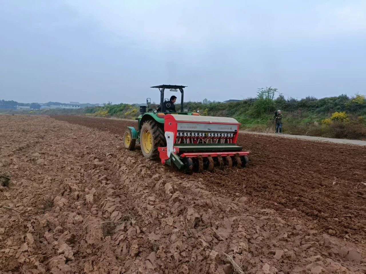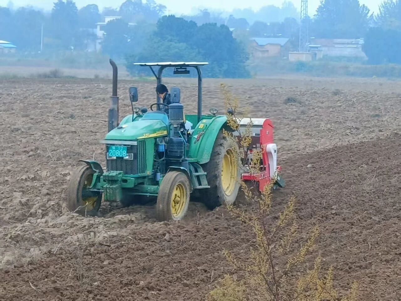 在百公里外的銅川市耀州區(qū)小丘鎮(zhèn)中原村,亞澳農(nóng)機(jī)同樣成為搶種主力。播種期推遲了近十天,土壤又濕,最怕播深不均和倒伏。農(nóng)機(jī)手操控著亞澳寬幅溝播機(jī)穿梭田間,機(jī)具搭載的指夾式排種器實(shí)現(xiàn)精準(zhǔn)下種,配合可調(diào)節(jié)播深系統(tǒng),將播種深度嚴(yán)格控制在24cm的最佳范圍,既滿足銅川市農(nóng)機(jī)推廣站副站長姚關(guān)盈提出的淺播搶積溫要求,又通過均勻播種避免了播量過大易倒伏的風(fēng)險。截至目前,銅川市已調(diào)度1600余臺套農(nóng)機(jī)投入秋播,亞澳機(jī)具憑借旋耕、播種、施肥一體化優(yōu)勢,大幅提升了濕墑地塊的作業(yè)效率,助力農(nóng)戶把延誤的農(nóng)時搶回來。