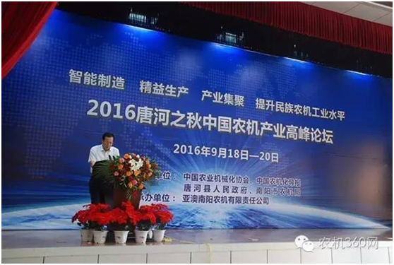 9月20日,由中國農(nóng)業(yè)機(jī)械化協(xié)會(huì)、《中國農(nóng)機(jī)化導(dǎo)報(bào)》、河南省唐河縣政府和南陽市農(nóng)機(jī)局共同主辦,亞澳南陽農(nóng)機(jī)有限責(zé)任公司承辦的2016唐河之秋中國農(nóng)機(jī)產(chǎn)業(yè)高峰論壇在河南省唐河縣舉行。全國各地農(nóng)機(jī)生產(chǎn)企業(yè)、當(dāng)?shù)亟?jīng)銷商以及媒體代表共200多人參加了此次論壇。
